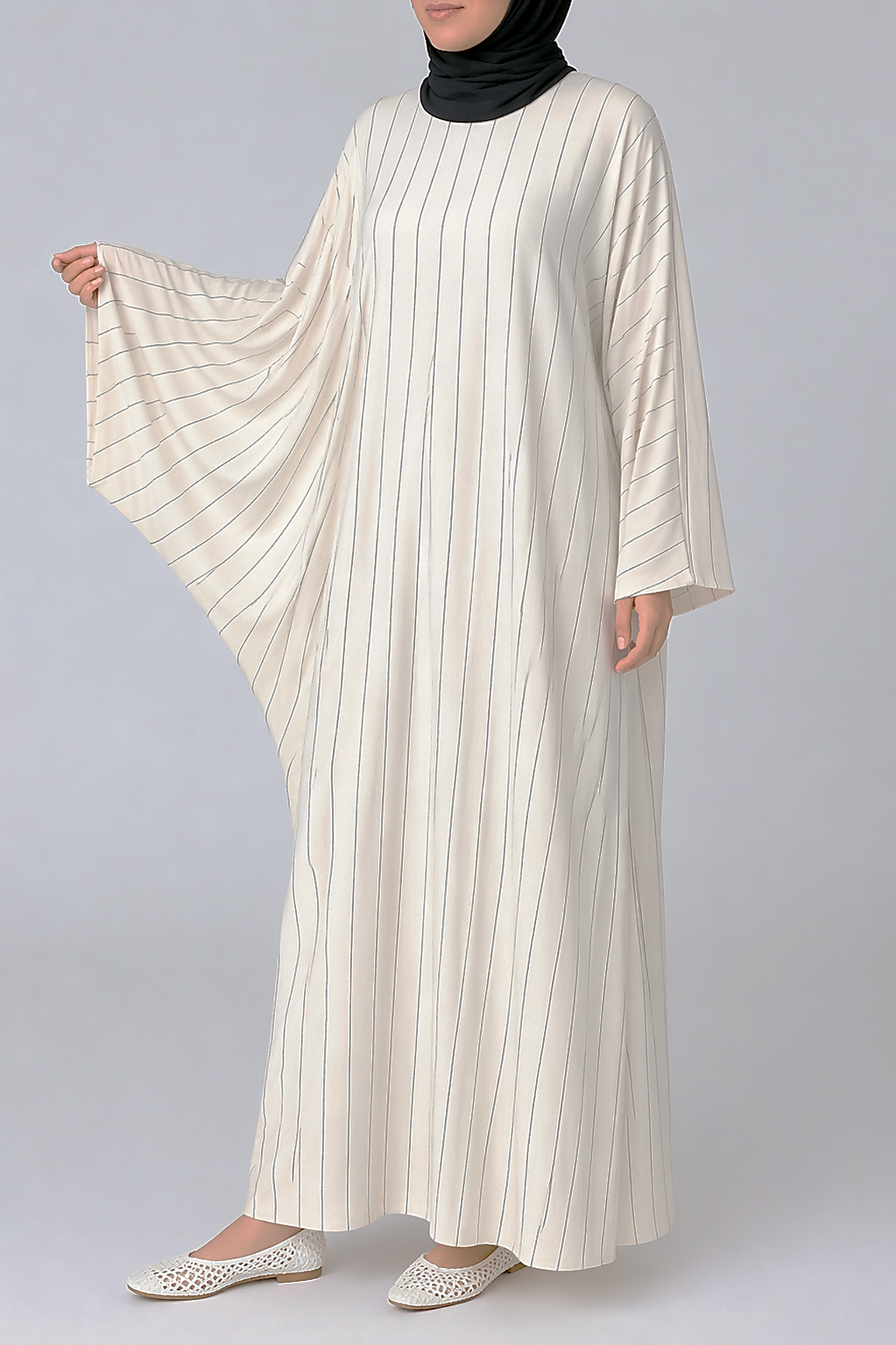 Beige Batwing cut Linen Pinstripe Abaya