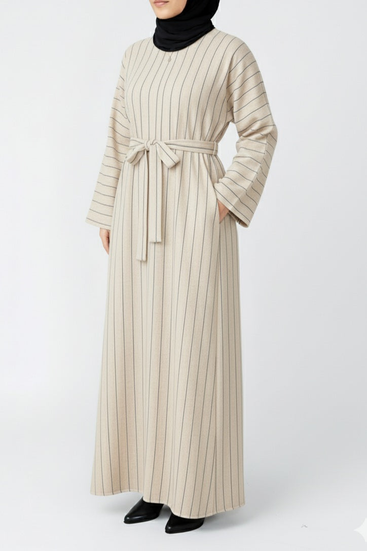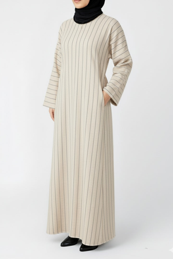 Beige Linen Pinstripe Straight cut Marwa Abaya