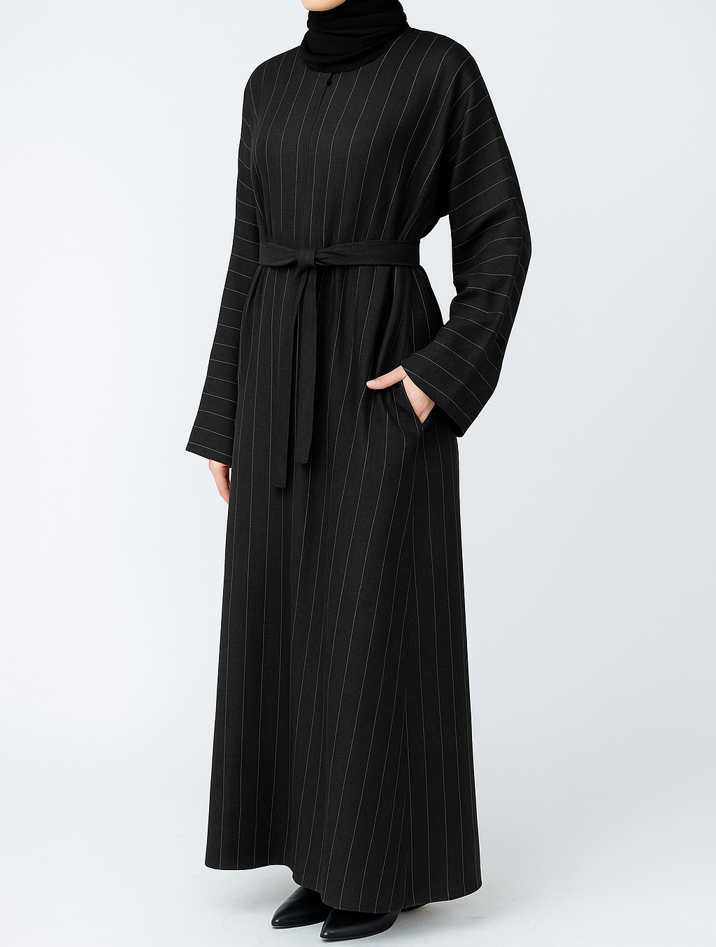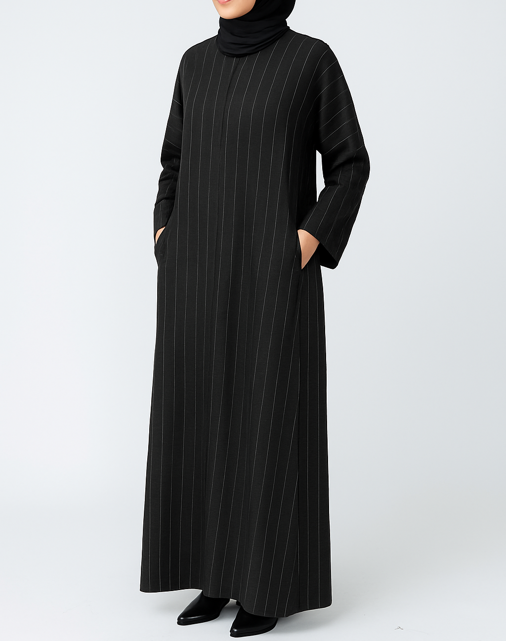 Black Linen Pinstripe Straight cut Marwa Abaya