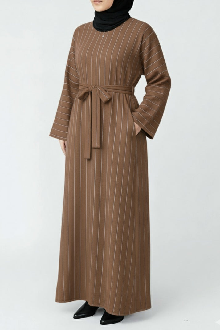 Brown Linen Pinstripe Straight cut Marwa Abaya