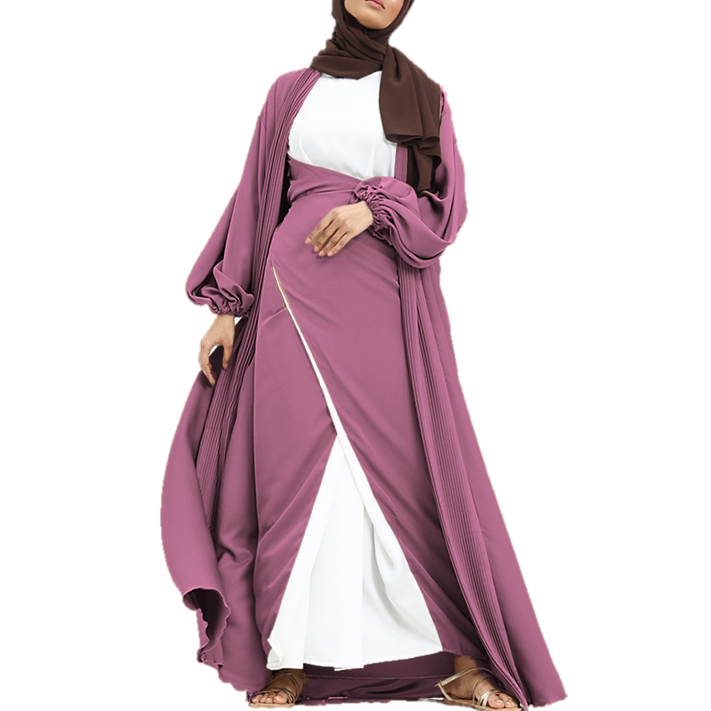 New elegant kimono set, featuring a colour-coordinated inner wrap slip allowing a Saree look at the bottom. The outer kimono boasts voluminous balloon sleeves and a pleated front, adding a touch of sophistication to your look. Complete with an optional belt for a customizable fit, this ensemble is perfect for any occasion.