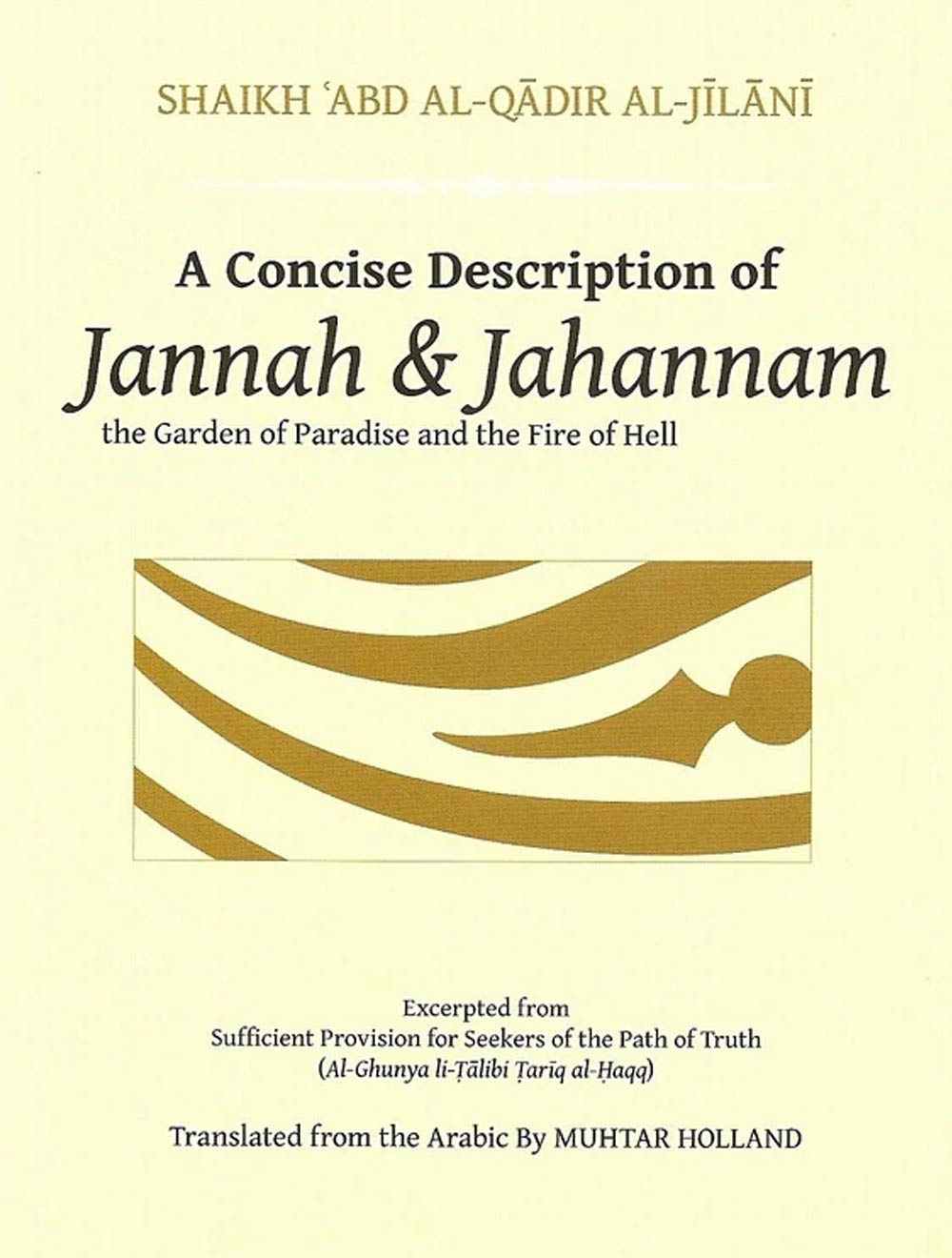 A Concise Description of Jannah (the Garden of Paradise) and Jahannam (the Fire of Hell) is excerpted from the larger work, Al-Ghunya li-Talibi Tariq al-Haqq (Sufficient Provision for Seekers of the Path of Truth). Written almost one thousand years ago by Shaikh 'Abd al-Qadir al-Jilani, whose eminence is universally acknowledged by Muslims of all persuasions including Shaikh al-Islam ibn Taymiyyah, it is translated by Muhtar Holland, one of the foremost translators of classical Arabic. This work will be most valuable to those who seek spiritual knowledge firmly grounded in knowledge of the Qur'an and the Sunnah.