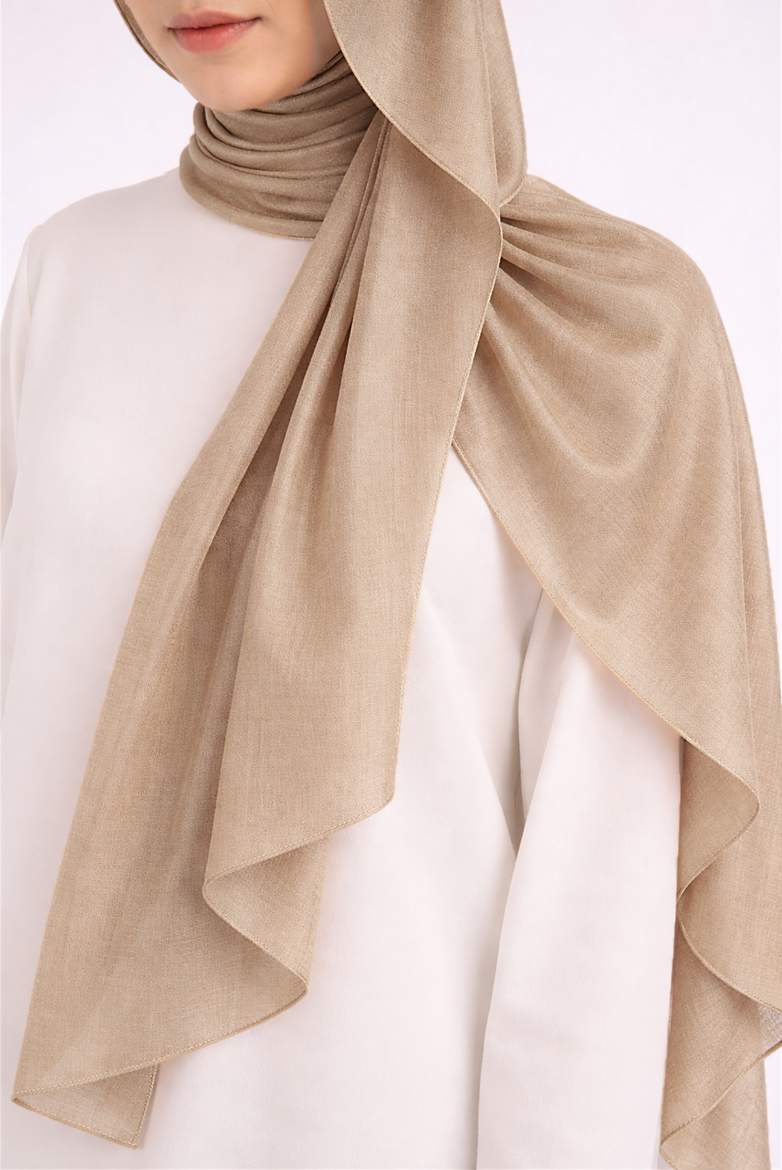 A plain woven fabric known as KATAN consisting of two pure silk threads twisted together to make the Katan silk hijab. The lush material gives it a slight tint on the hijab creating this elegant shine on the hijab. the silk material used in the fabric is extremely fine, soft and luxurious. An amazing material hijab bought into the hijab world by AURAH.