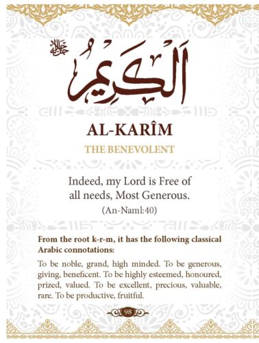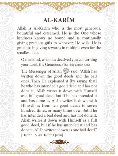 These names offer a conspectus of the articles of Islamic faith and introduce concisely the being and attributes of Allah.
