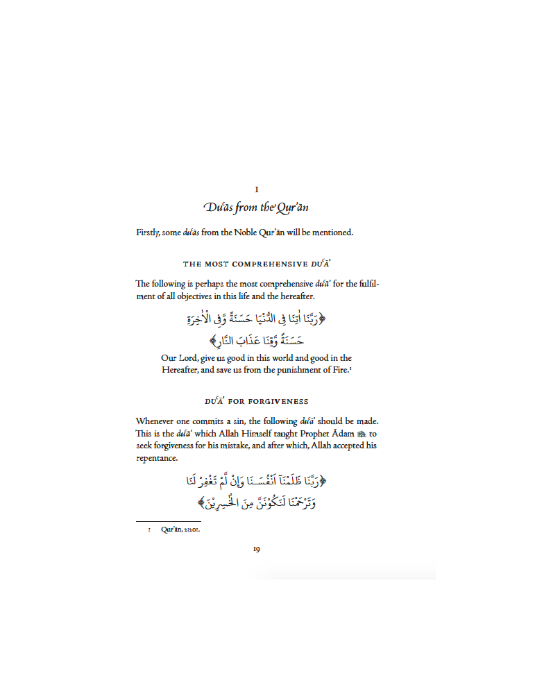 Supplicating to Allah is the primary essence of worship and an integral part of every believer's life. It is one of the most effective ways of building a strong connection with the Creator. Throughout the day, a believer should be in constant mode of asking Allah for his or her needs, whether big or small. Supplicating to Allah can be done in one's own words and in any language. However, the supplications/prayers taught to us in the Qur'an and Sunnah are unique and contain special spiritual benefits. Each supplication holds oceans of meanings within itself. As such, one should memorise them with the translation, and form a habit to recite them at various junctures of one's life.