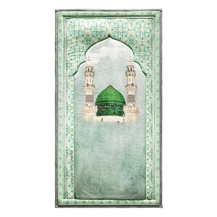 Urban Rugs UK presents the Adult Padded Prayer Mat with Al-Masjid an-Nabawi Design, a beautiful tribute to the Prophet’s Mosque in Madinah. Featuring the iconic Green Dome surrounded by intricate Islamic patterns, this prayer mat evokes serenity and a deep spiritual connection for every salah.