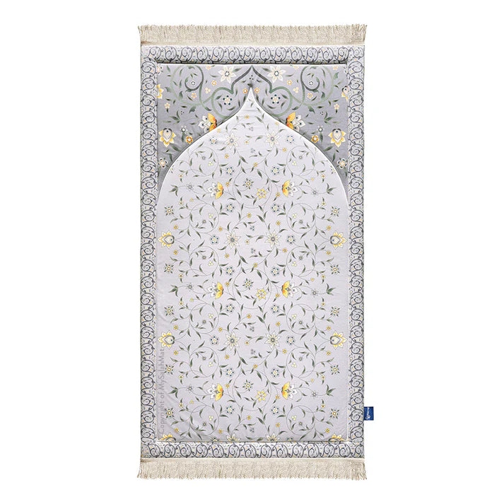 Urban Rugs UK offers you an experience in luxury and tranquillity in your salah with our hand-sewn UK prayer mat, featuring an elegant Yellow Floral Vine design inspired by traditional Islamic and Mughal artistry. The intricate floral patterns and soft colour palette create a serene atmosphere, making it a beautiful addition to any prayer space.
