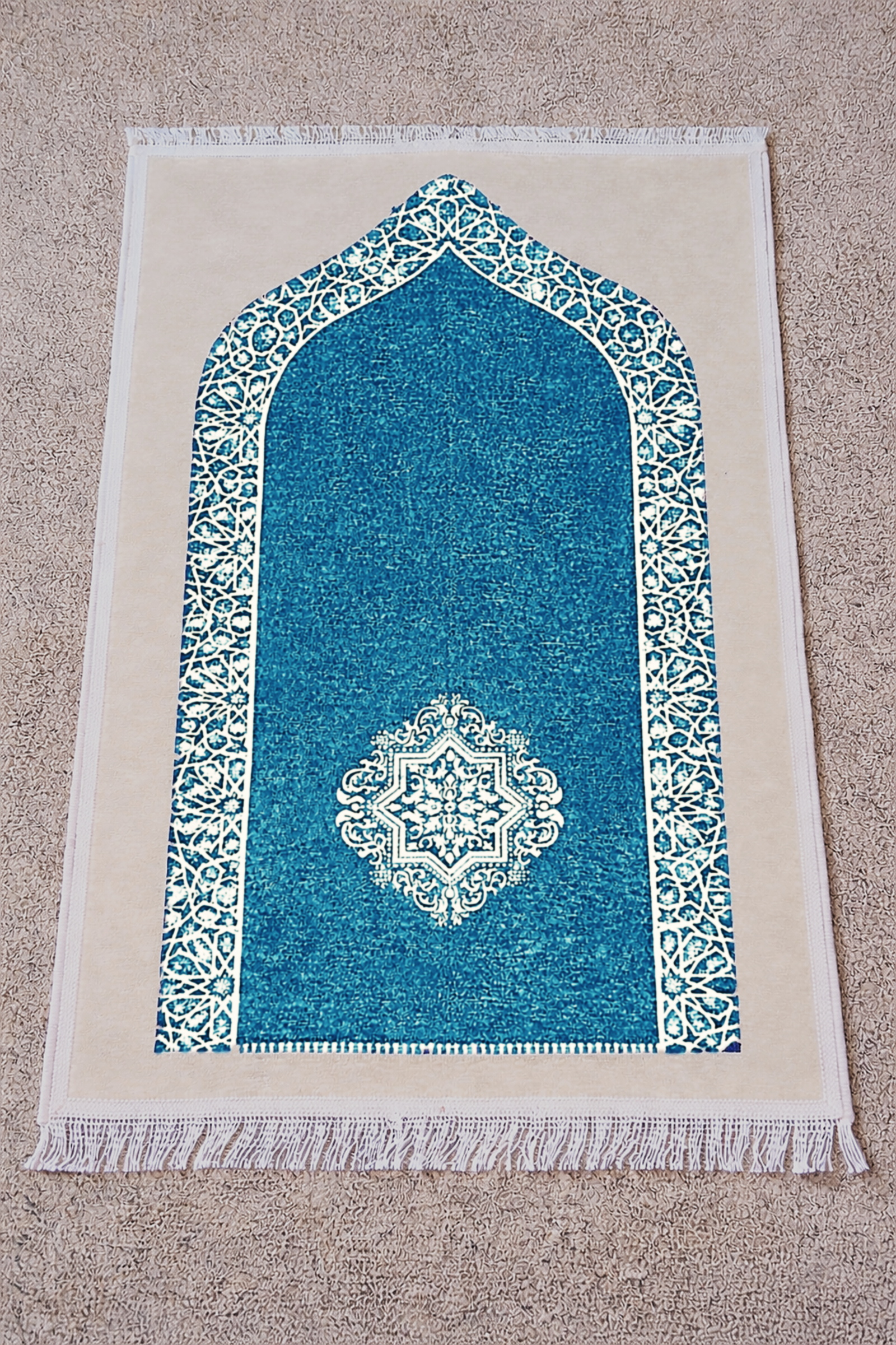 Turquoise Blue Luxury Double-Sided Chenille Prayer Mat