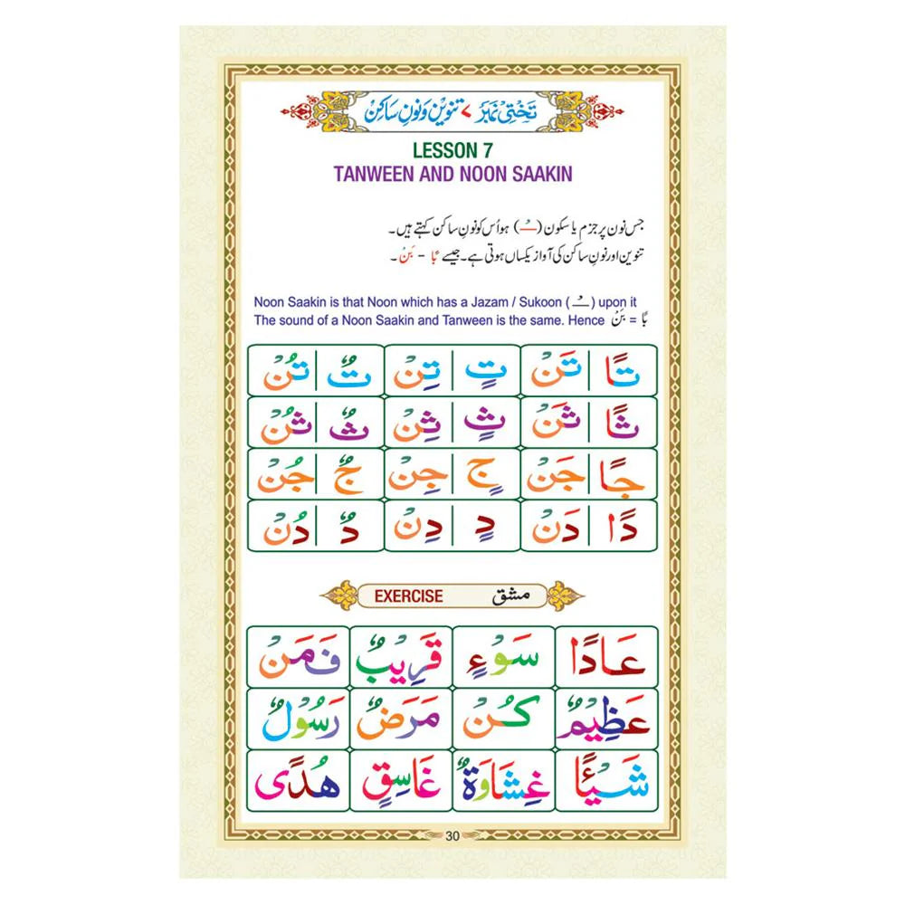 The ever-popular Nurani Qaidah with Tajweed rules in English and Urdu. This new edition is colour coded to make learning easier.