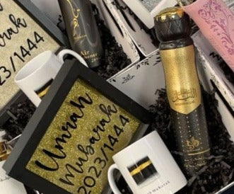 Congratulate your loved ones with one of our Umrah Mubarak hamper baskets. This particular gift basket contains: