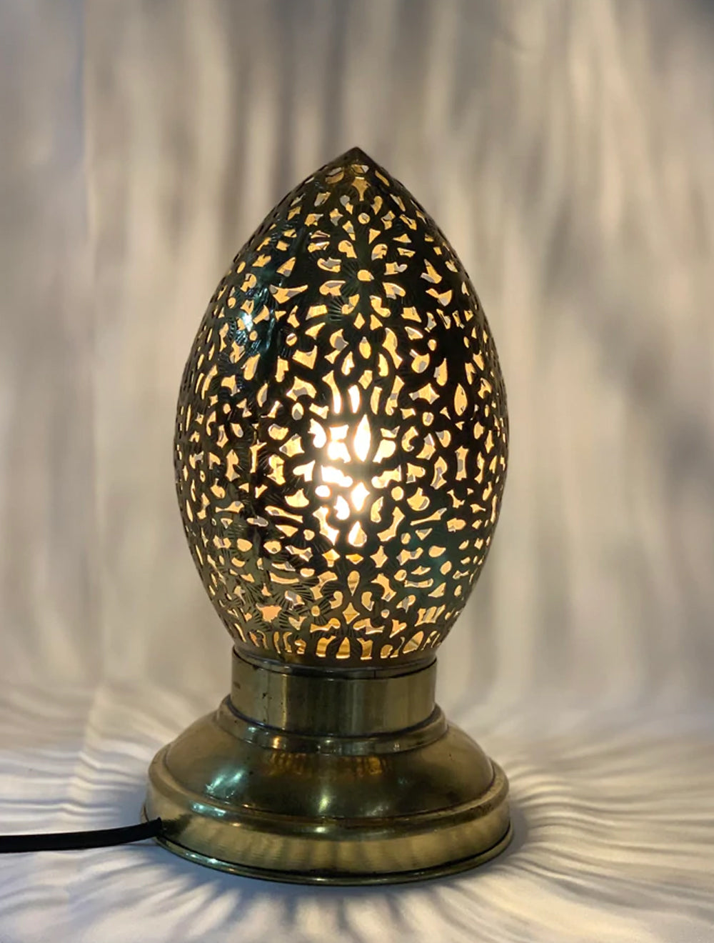 • This exceptional 'Flame' table lamp is finely pierced from solid brass