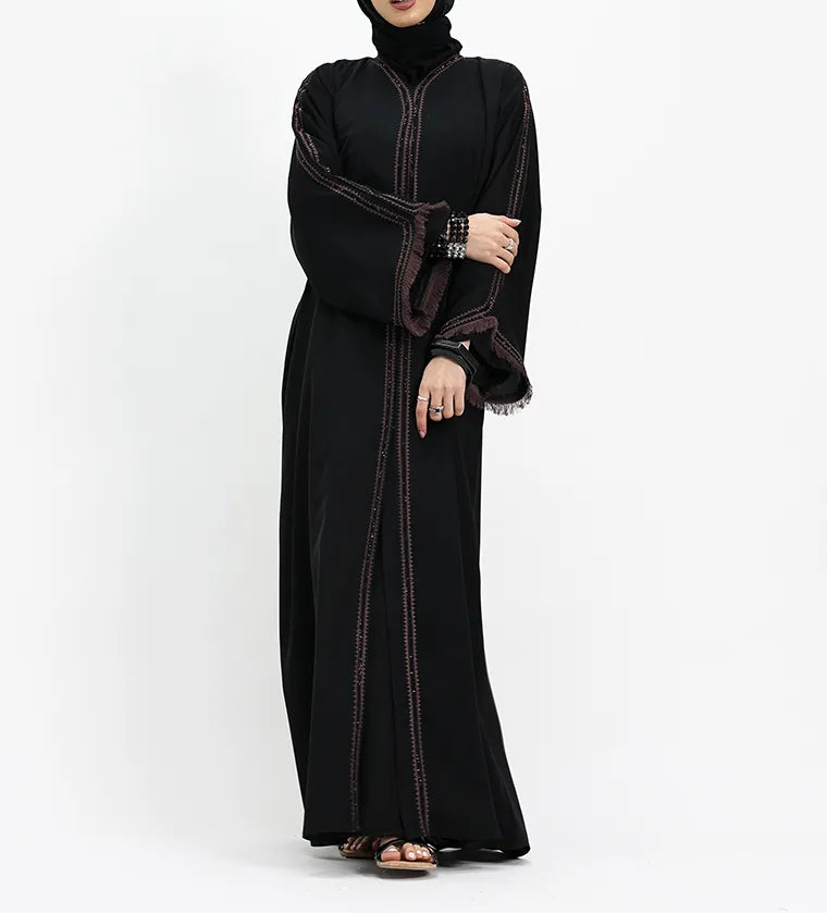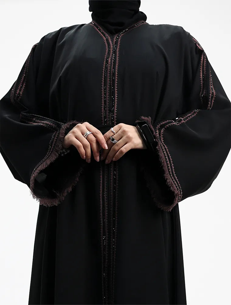 Black & Mauve Mona Open Abaya