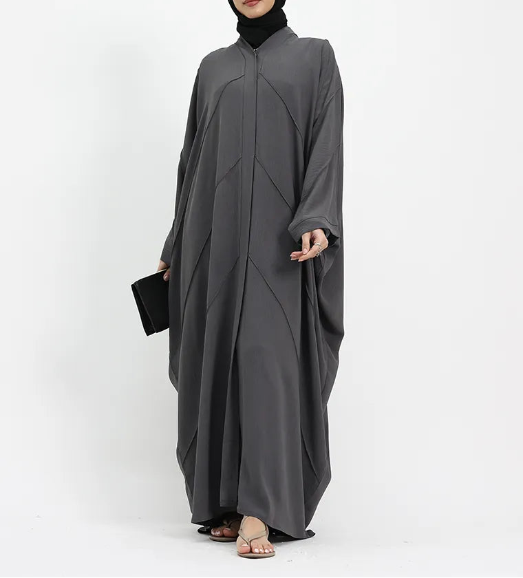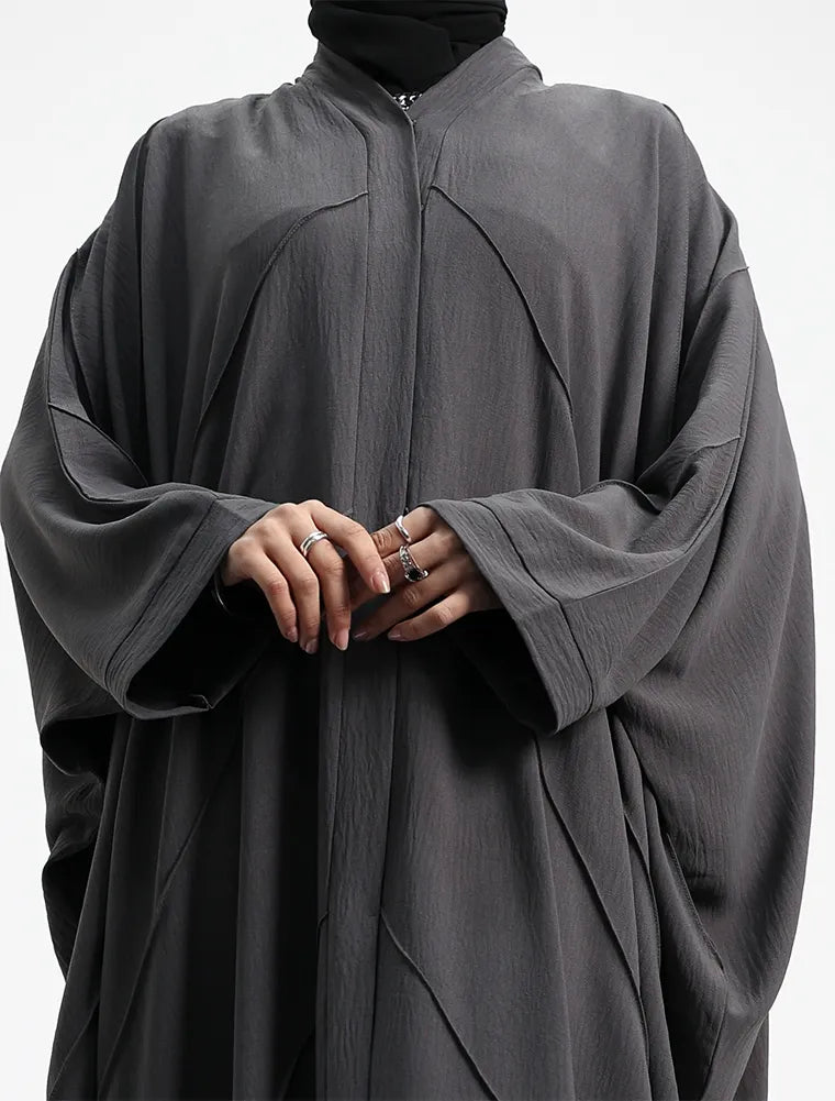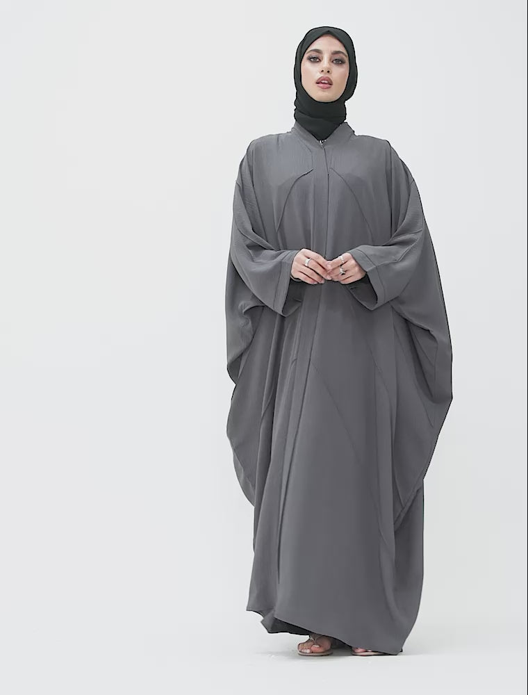 Grey Crepe Open Batwing Abaya