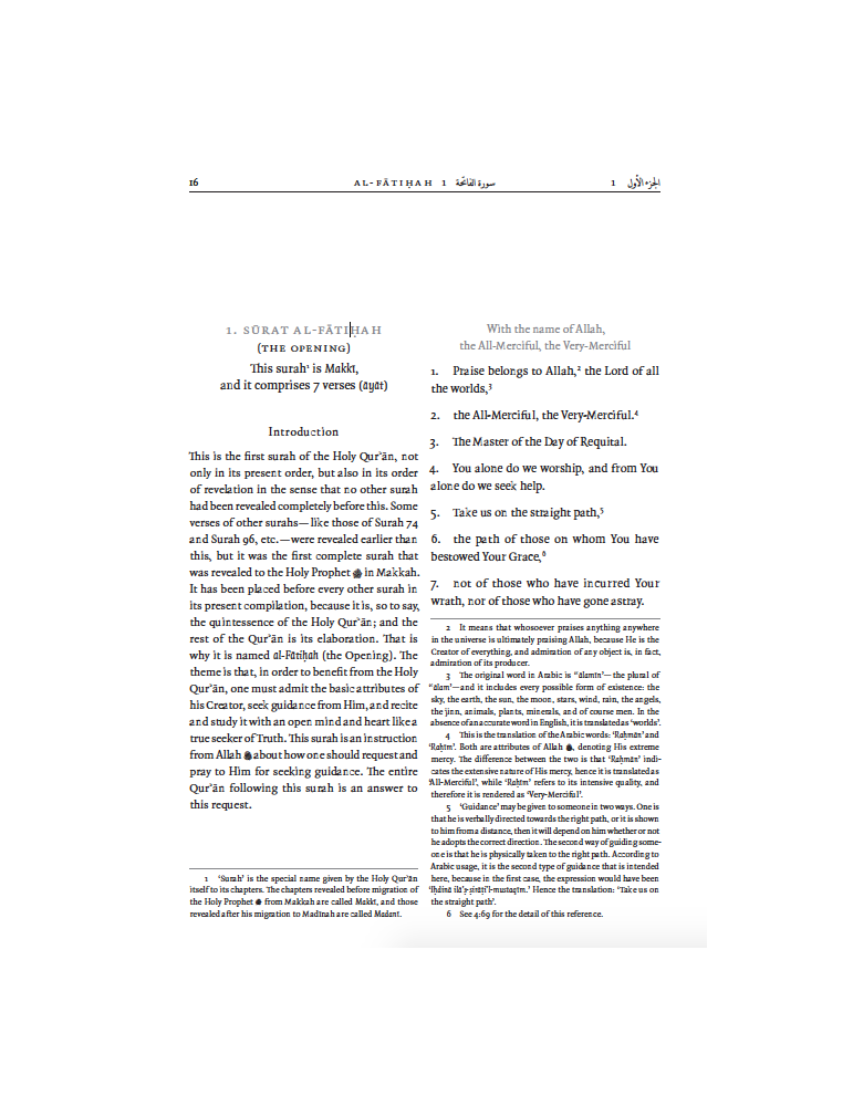 - The clear and beautiful typeset text of the Qur’an is based on the Madīnan muṣḥaf while retaining the useful features of the Indian subcontinent copy. The Arabic text is existing at the top of each page, accompanied by Mufti Muhammad Taqi Usmani’s renowned English translation and notes below it.
