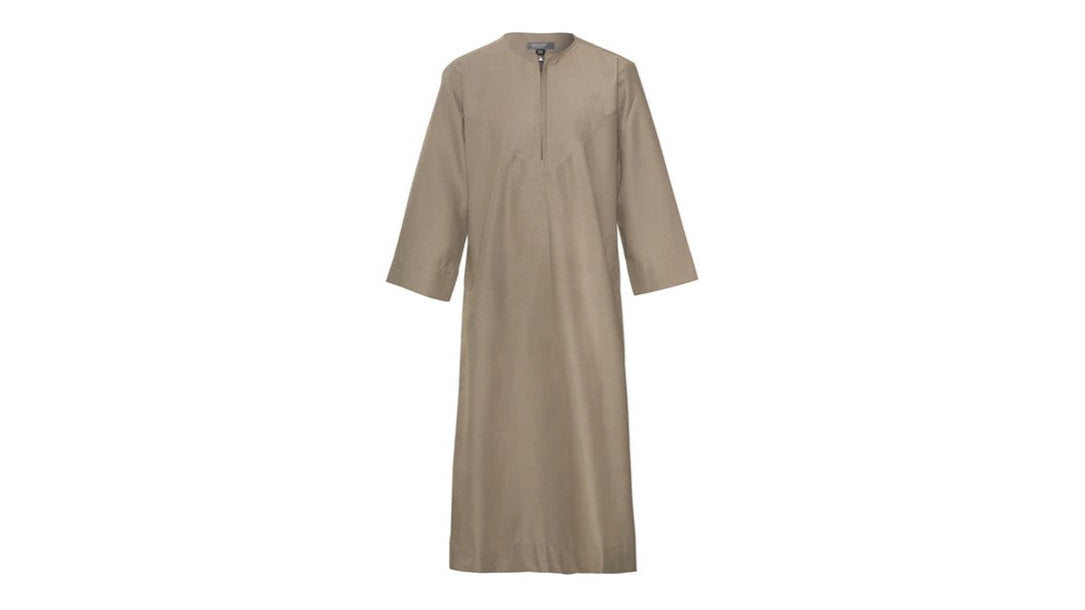 This classic cotton Thobe, features round neck with the zip for easy removal. This piece is 100% polyester that is perfect for all occasions.