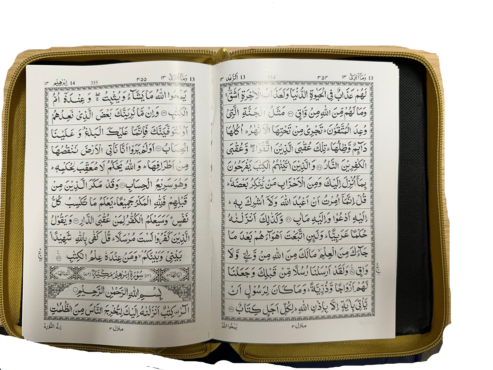13 Line Golden zip Quran, comes in a golden zipped pouch.