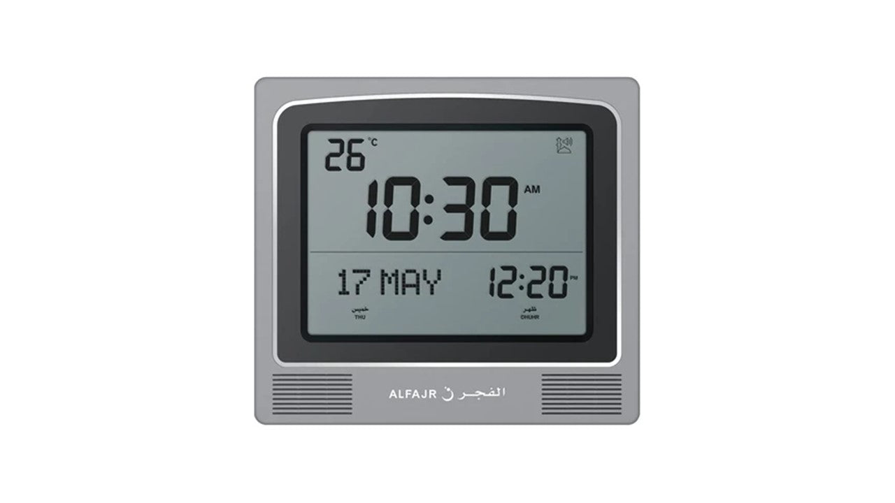 Wall and Table clock with large LCD screen, can be connected to external speakers.