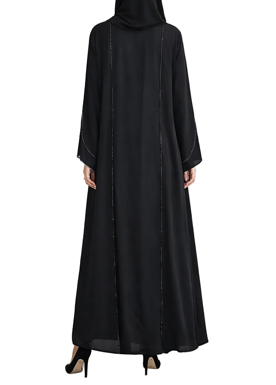 Effortlessly elegant and beautifully refined, the Badia Beaded Panel Abaya is designed for those who appreciate subtle detailing with a graceful silhouette.