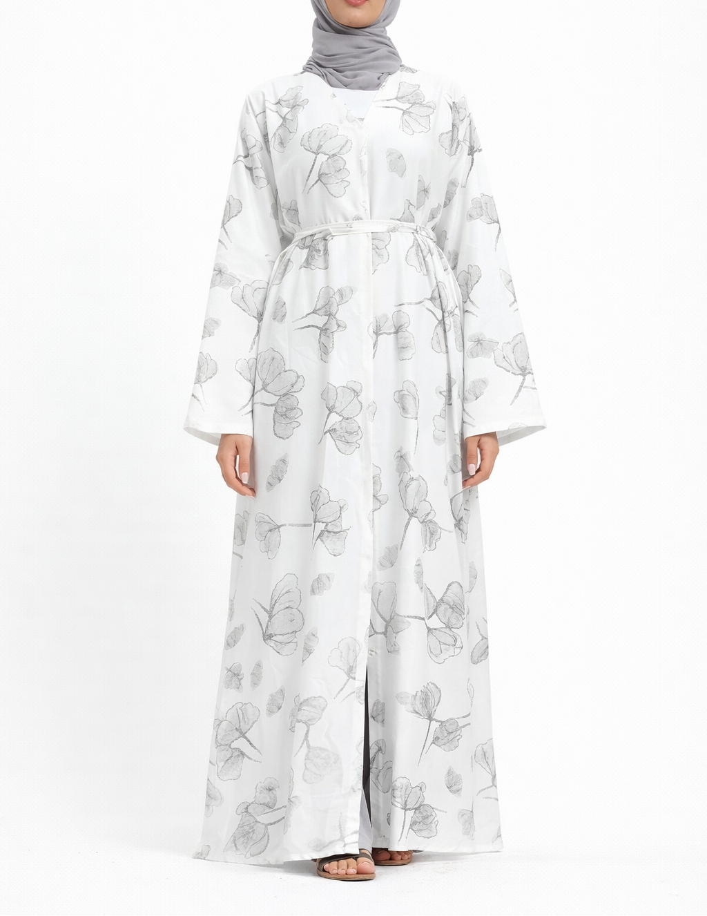 Designed with an open front and a discreet press-button fastening at the top, it provides ease of wear while maintaining a modest silhouette. The detachable belt allows you to create a more structured, tailored look or wear it loose for a relaxed, flowing style.