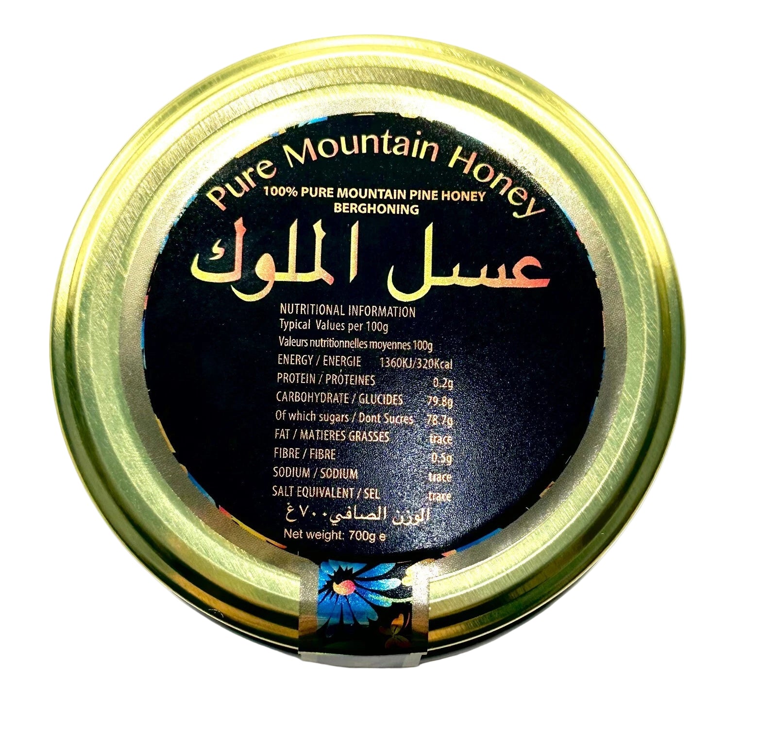 - 100% pure and natural mountain honey (عسل جبلي).