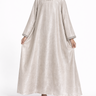 For a flattering and adjustable fit, the abaya features discreet inner belt ties hidden within the stitching, allowing you to define the waist or wear it loose while maintaining a seamless outer look.