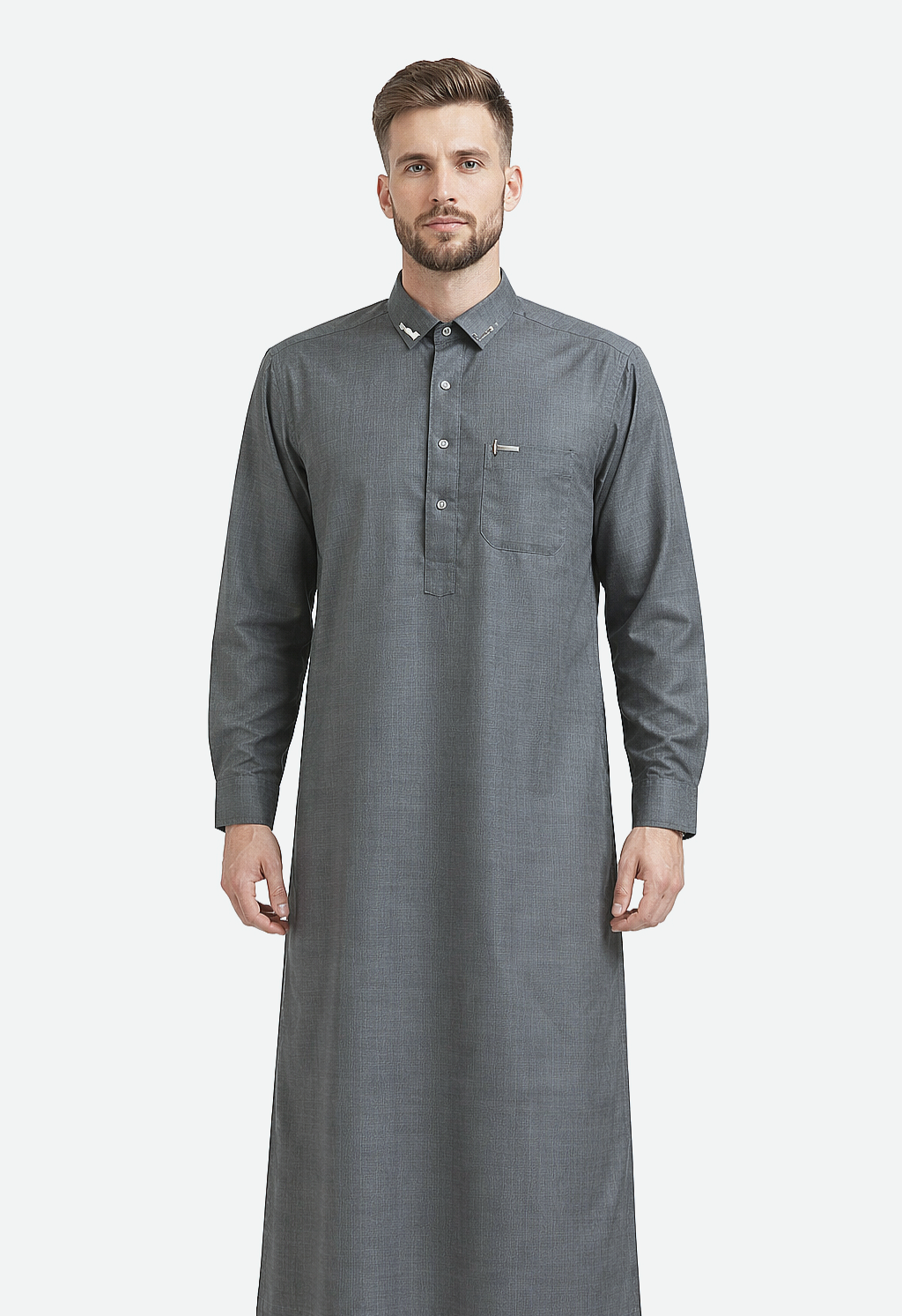 Grey Premium Detail Thobe Silver Accent