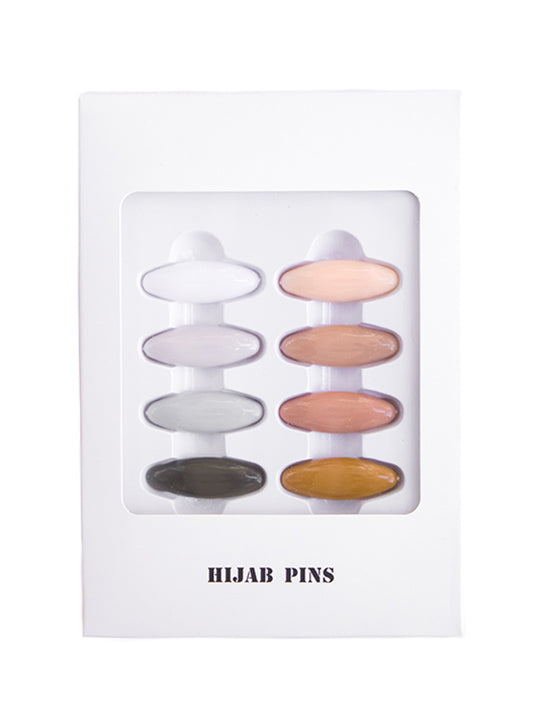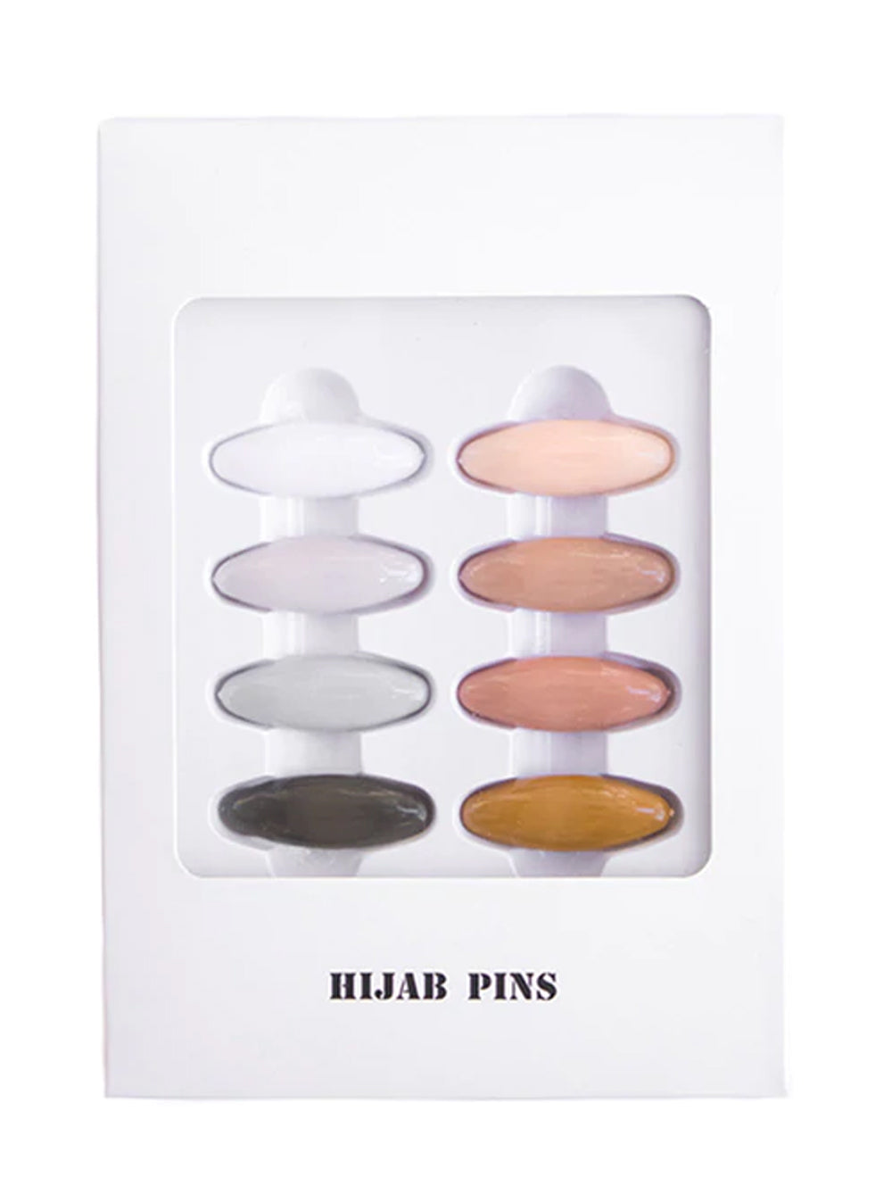 High quality no snag hijab safety pins comes with 8 neutral shades including Black and White.