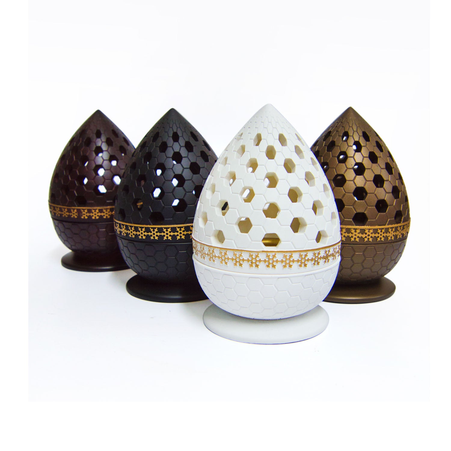 Bring a taste of the middle east and surround yourself with the relaxing aromas of Bukhoor with this Modern Arabian metal Bhukoor Burner, with Arabian calligraphy detailing on base, a removable perforated tray for burning coal, and a removable perforated Polyresin lid in a range of colours.