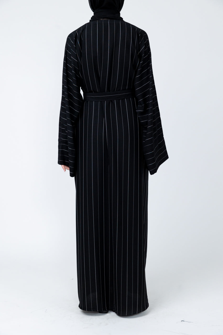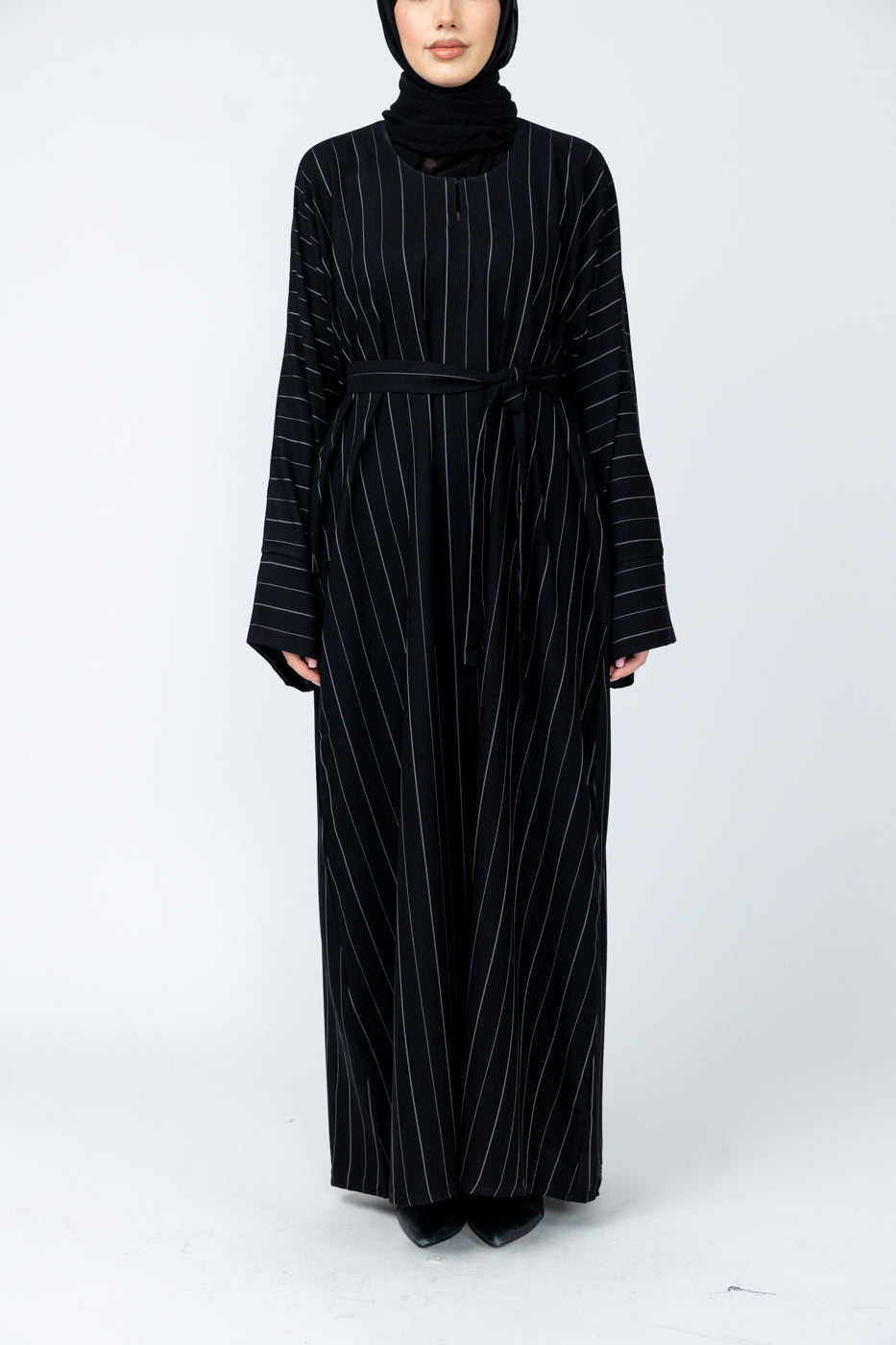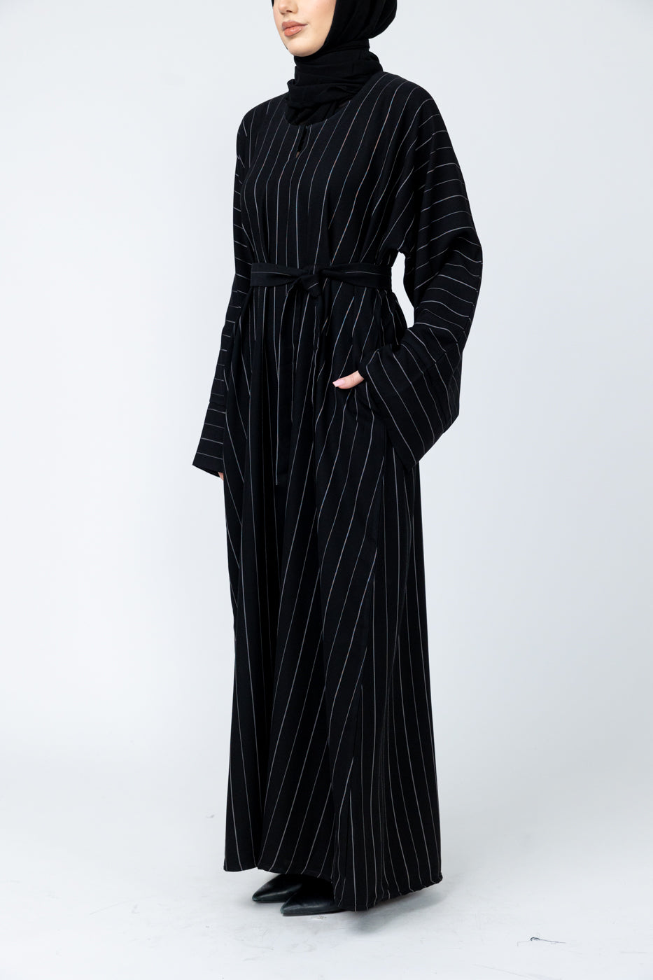A simple yet classy, loose, closed abaya with textured, stripe detailing. A great item for everyday wear with that extra something.