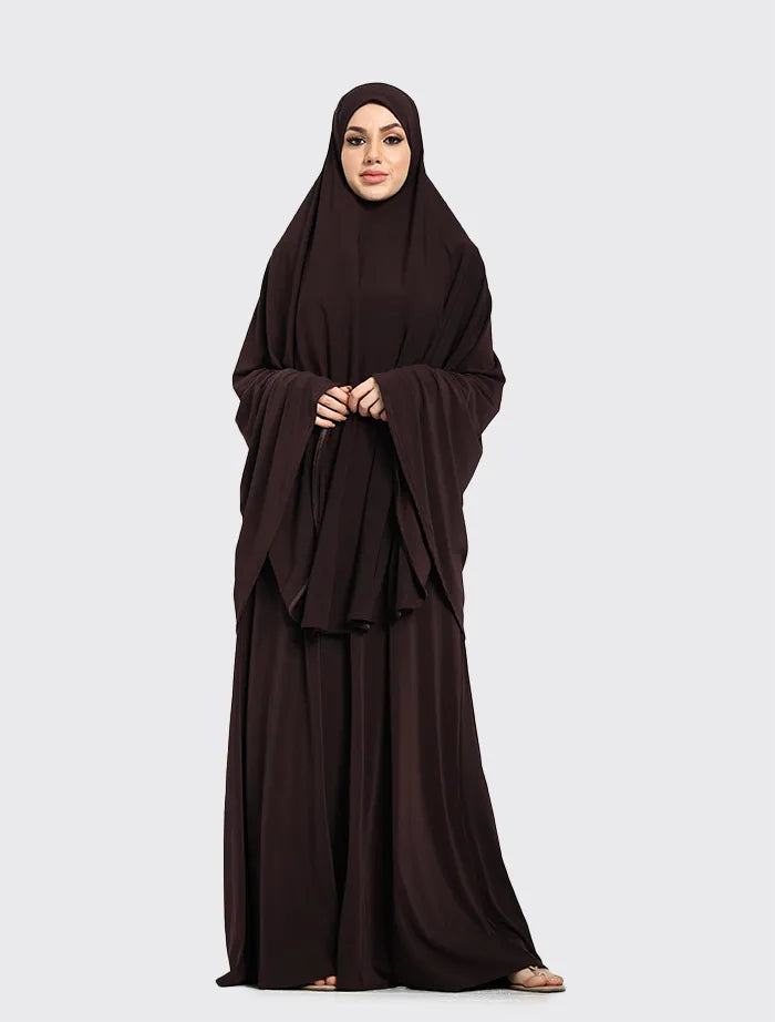 This Jersey Burkah and Skirt set is ideal for prayers or day wear. It is a Pull-on Hijab which drapes from the head and is made from a high-quality jersey fabric.