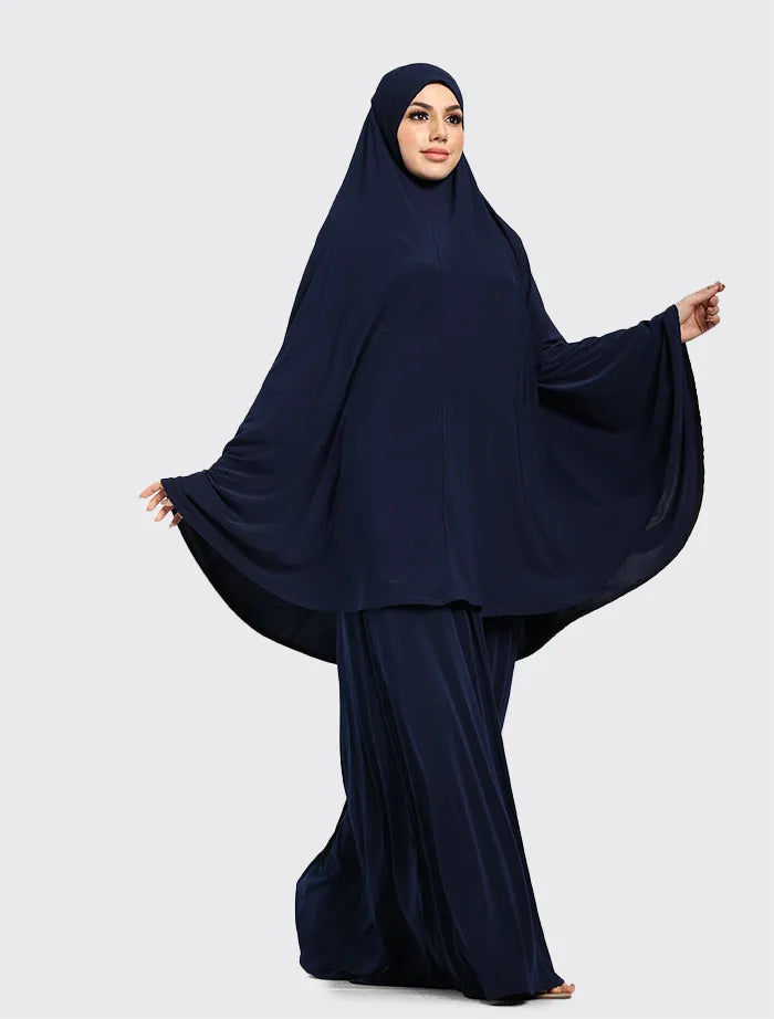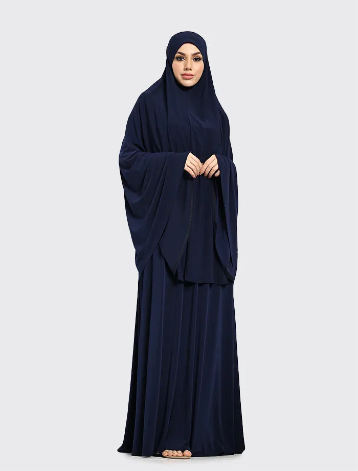 This Jersey Burkah and Skirt set is ideal for prayers or day wear. It is a Pull-on Hijab which drapes from the head and is made from a high-quality jersey fabric.
