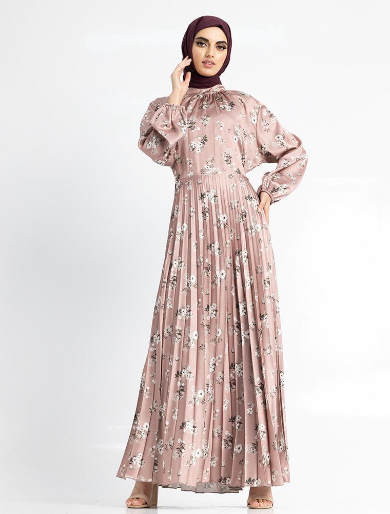 This stunning maxi dress features a sunray pleated skirt and elegant styling details. It boasts a mandarin collar with delicate gathers and a loophole button fastening at the back. An attached belt provides a more structured fit, perfectly complementing the pleated skirt.