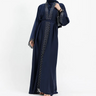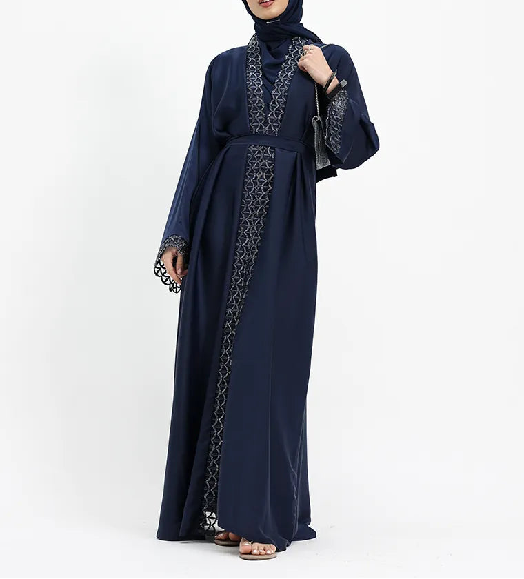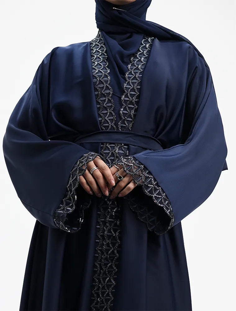 Navy Huda Applique Two-Piece Open Abaya