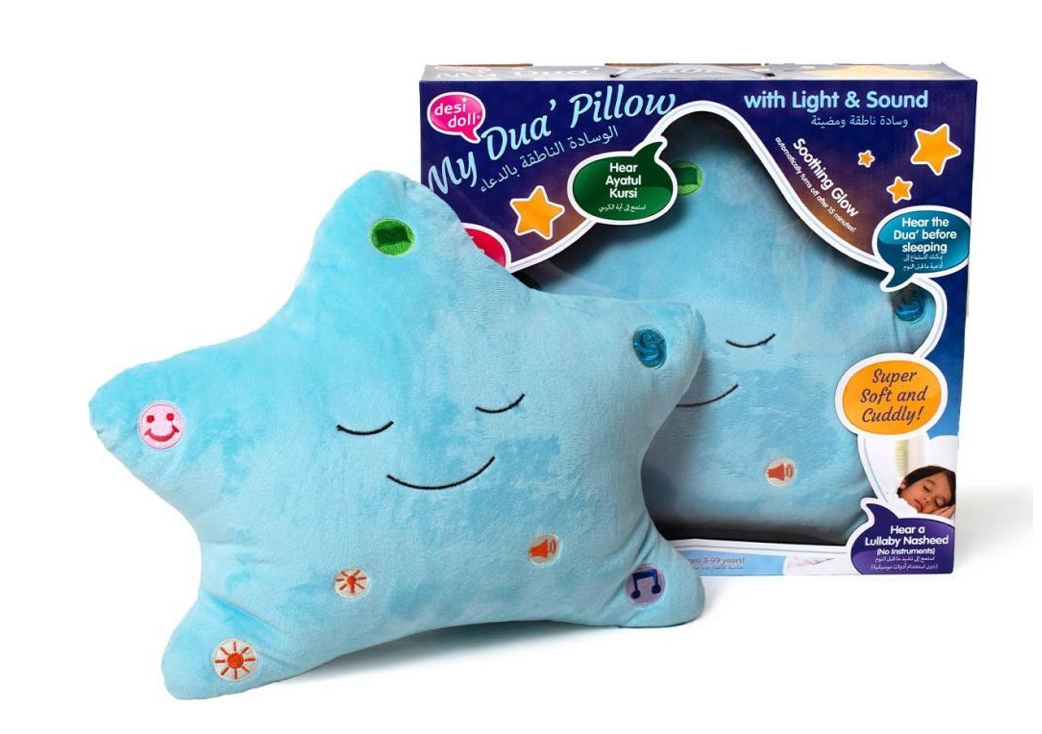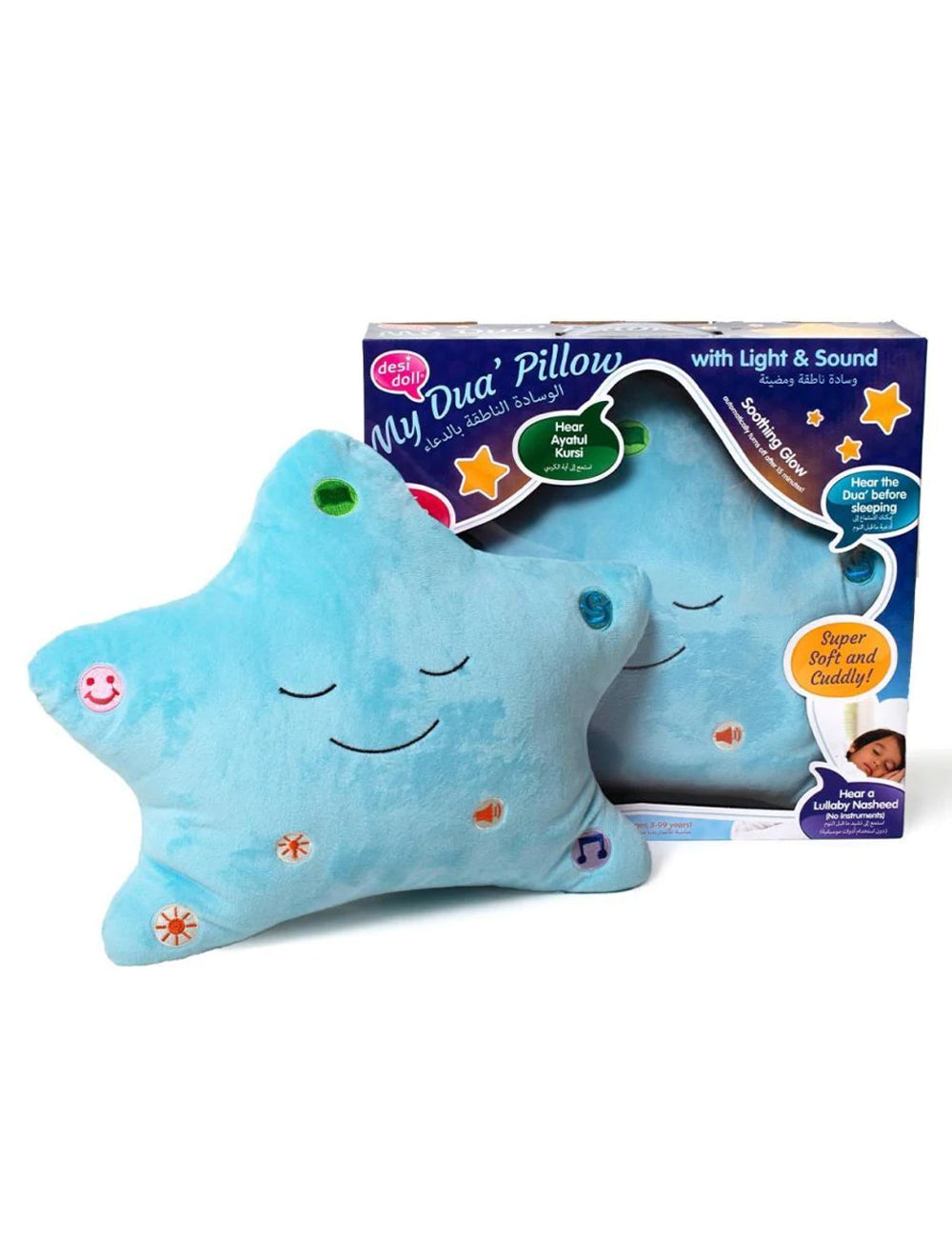 Child-safe LED lights and over six minutes of sound combine in Desi Doll Company original My Dua Pillow allows your child to hear nighttime dua supplications and a soothing lullaby to make bedtime easier, and more fun than ever!