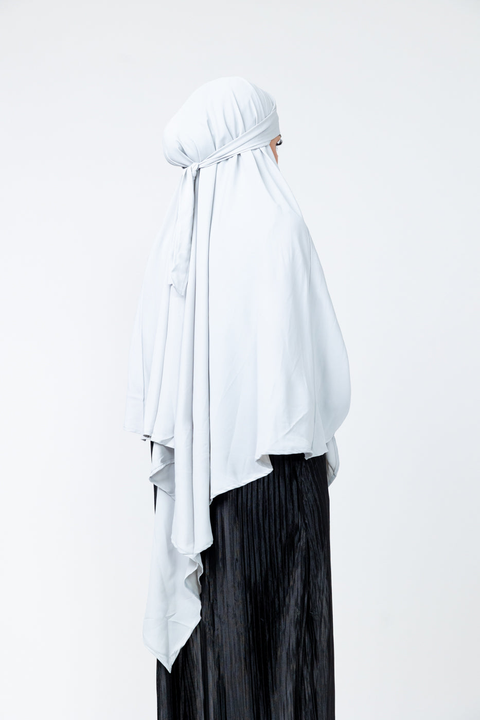 It comes in a single size. This khimar offers exceptional modesty and comfort which completely covers the upper body. Featuring a tie back headband. Crafted from lightweight fabric in medina silk touch effect (Soft and pleasant material totally opaque.) A beautiful piece with an elegant flow.