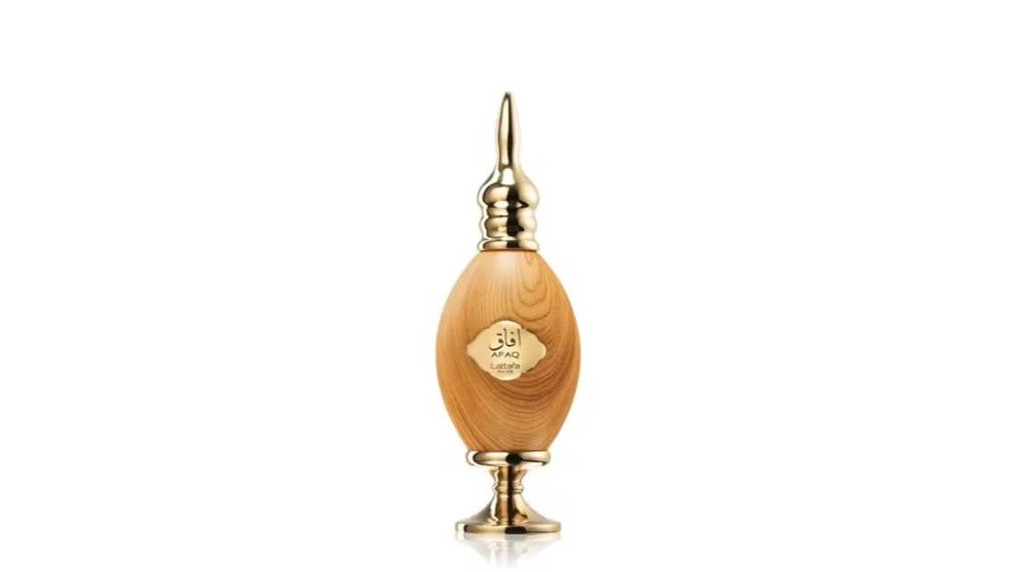 The scent story of Lattafa Pride Afaq Gold perfume begins with crisp pear and green cassis and develops into an aroma of soft, bubblegum-scented tuberose and sensual warm jasmine. The base notes of the perfume include cashmeran and sandalwood, giving a smooth and long-lasting accord of luxurious wood and silky amber.