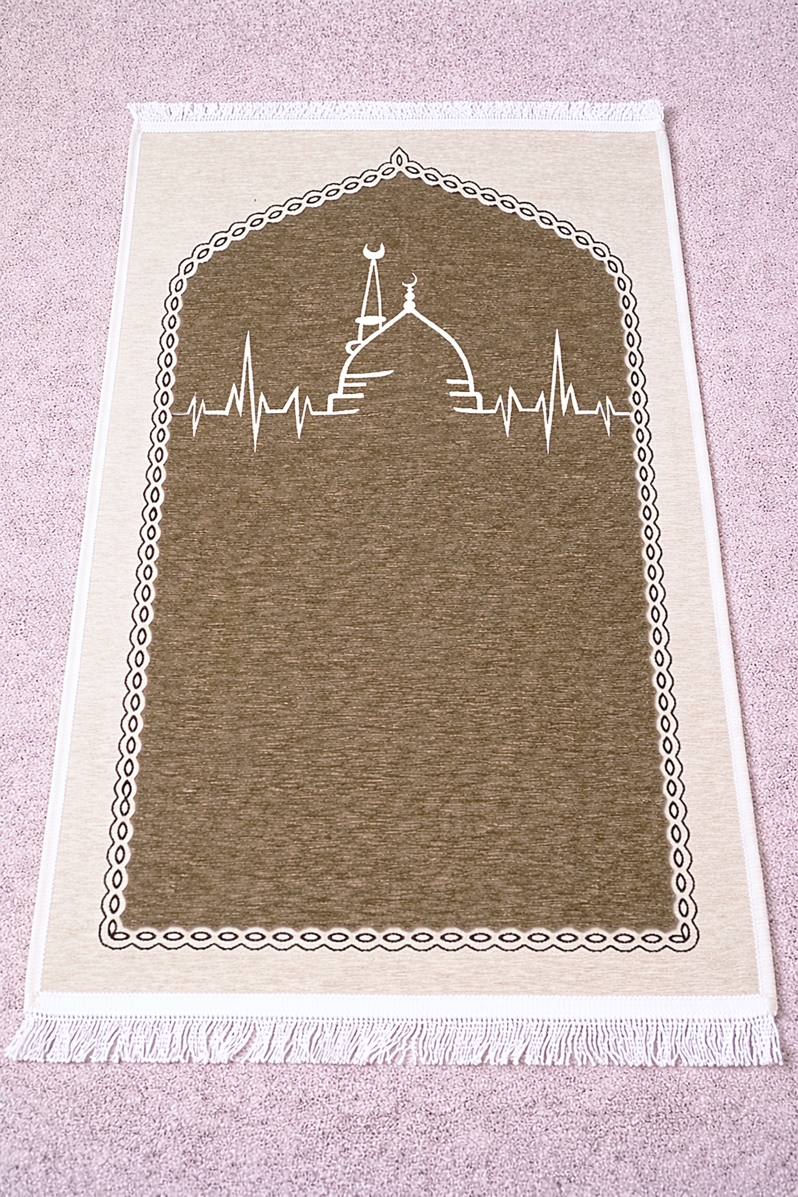 Golden Brown Luxury Double-Sided Chenille Prayer Mat – Mosque Heartbeat Design