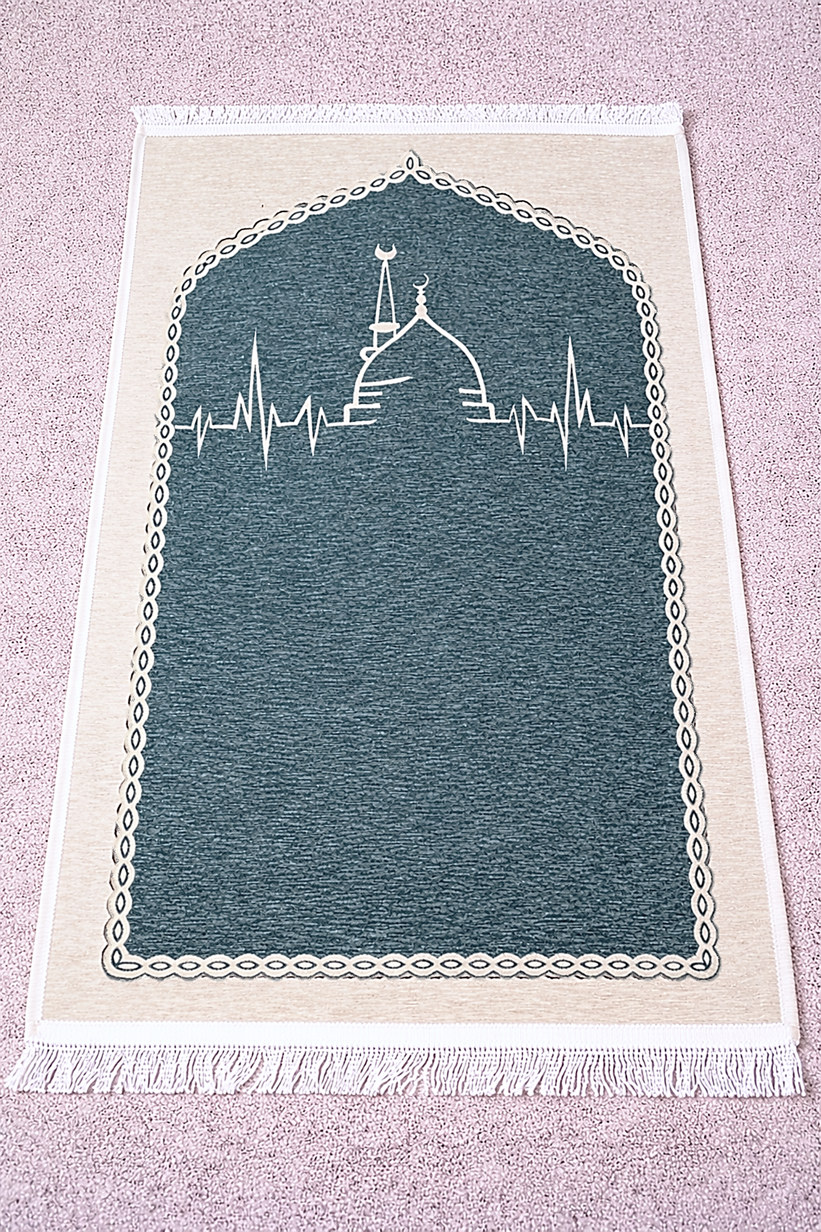 Luxury Double-Sided Chenille Prayer Mat – Mosque Heartbeat Design