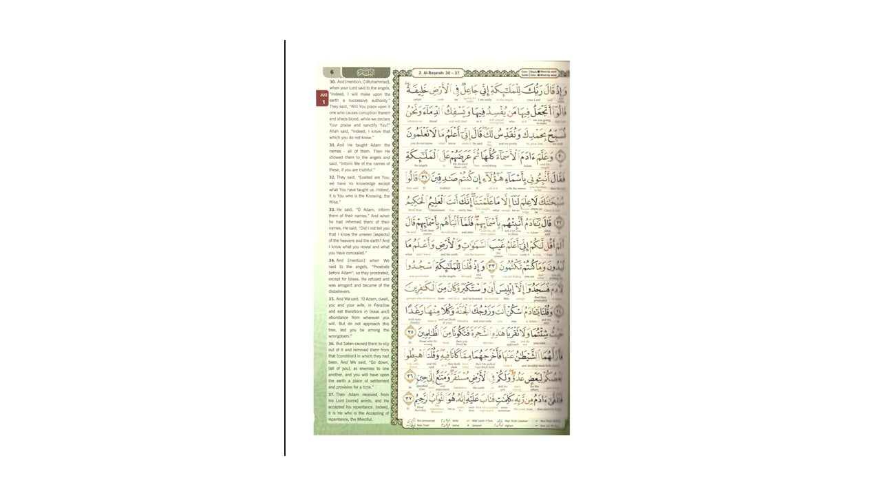 - If you are looking for a beautiful Quran with Arabic-English word-for-word translation , in Rasm Uthmani Script, with color coded tajweed, all-in-one volume, at an excellent price, then look no further.