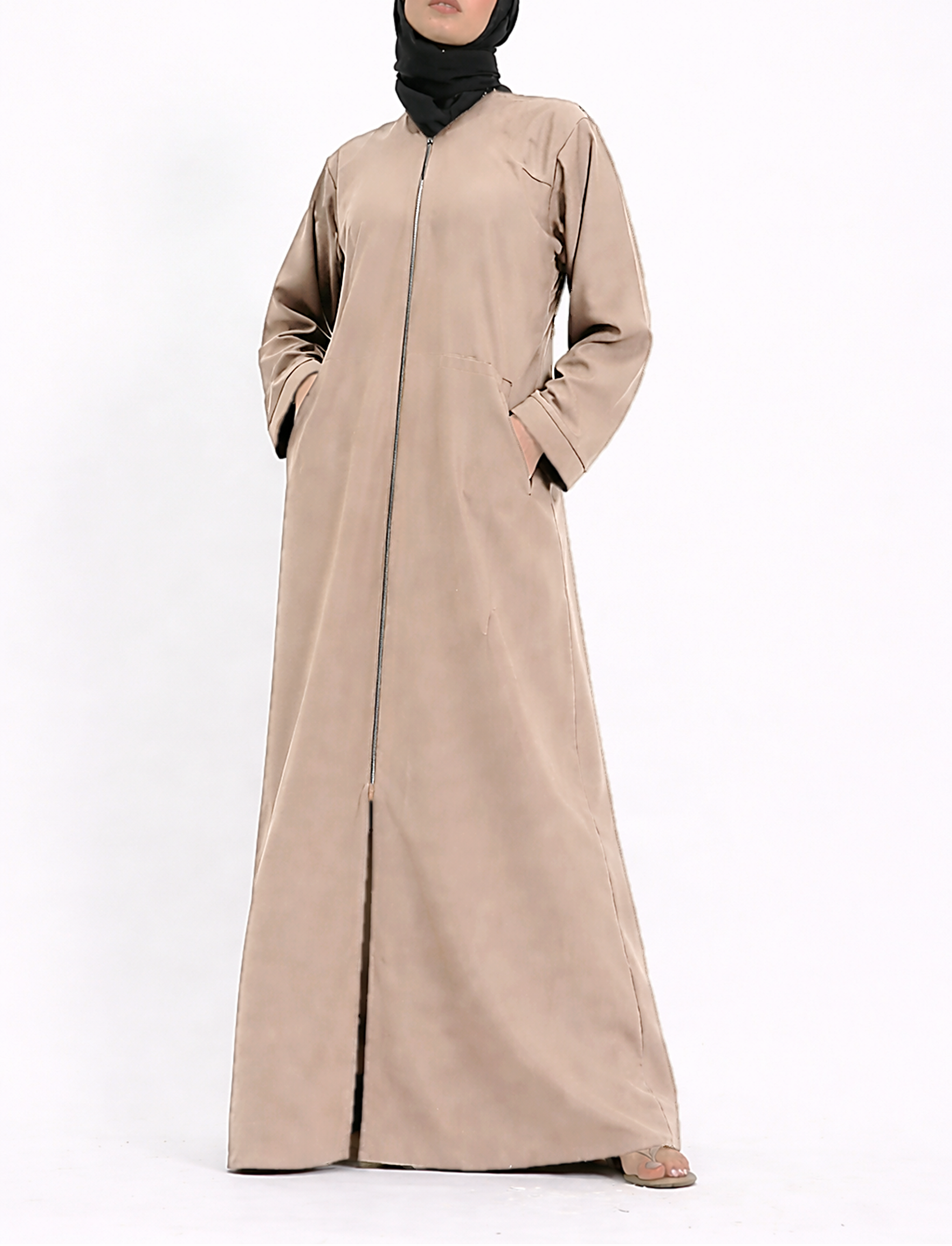 Light Mocha Essential Full Zip Soft Abaya